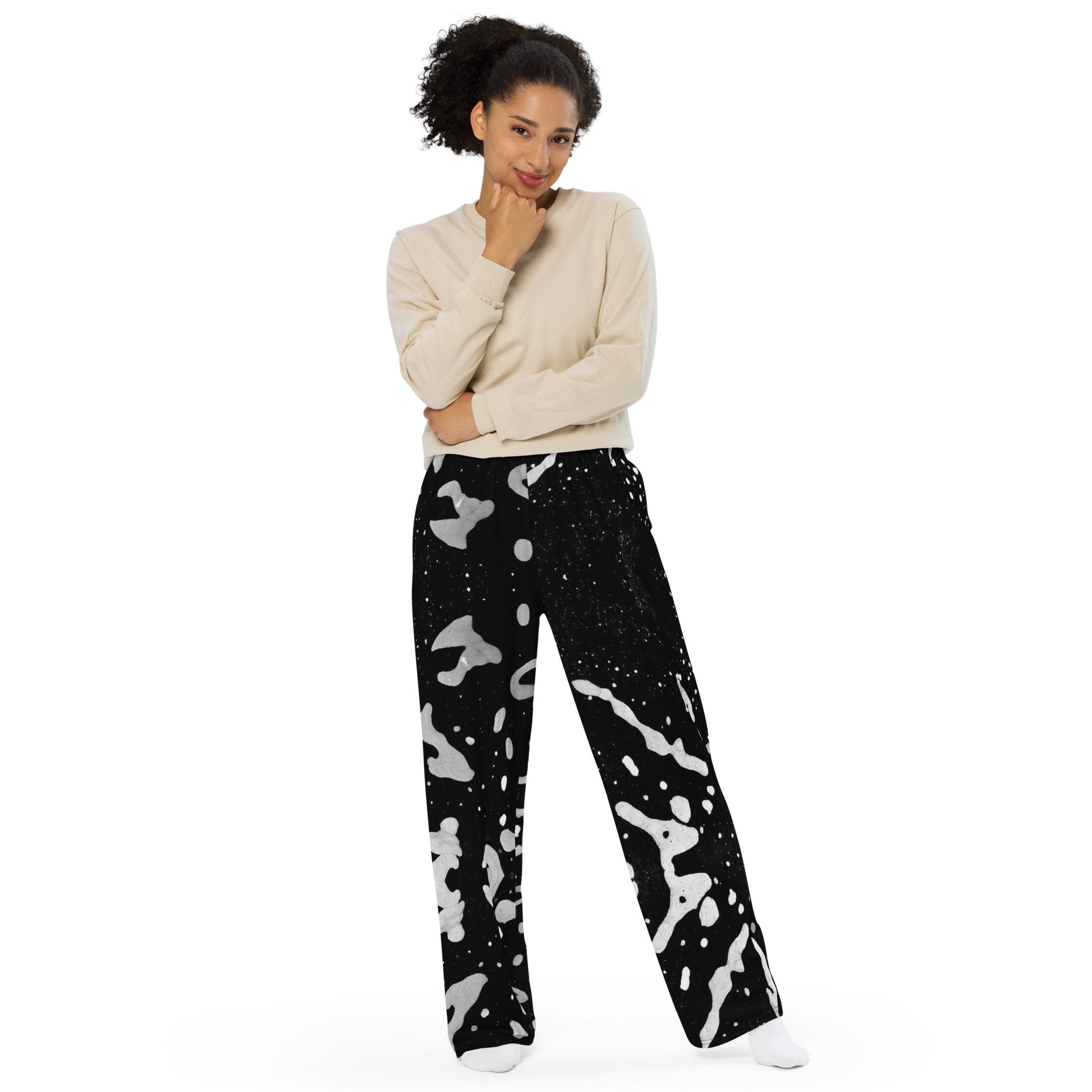 Get the comfort of pajamas in this stylish pair of wide-leg pants. With the adjustable waist and stretchy fabric, it’s like your favorite sweatpants but better.